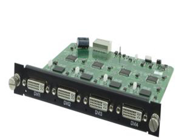 深圳龍程威尼VINIAV 4路DVI輸出板卡out-DVI4,配合數字高清混插矩陣主機使用,采用獨立板卡設計,每塊卡支持4路DVI信號輸出,低成本、高性能的靈活應用,支持1920×1200@60Hz的數字高清圖像傳輸。將模擬視頻信號及數字高清信號轉換成DVI信號進行傳輸,在使用和擴展方面更加靈活方便。
